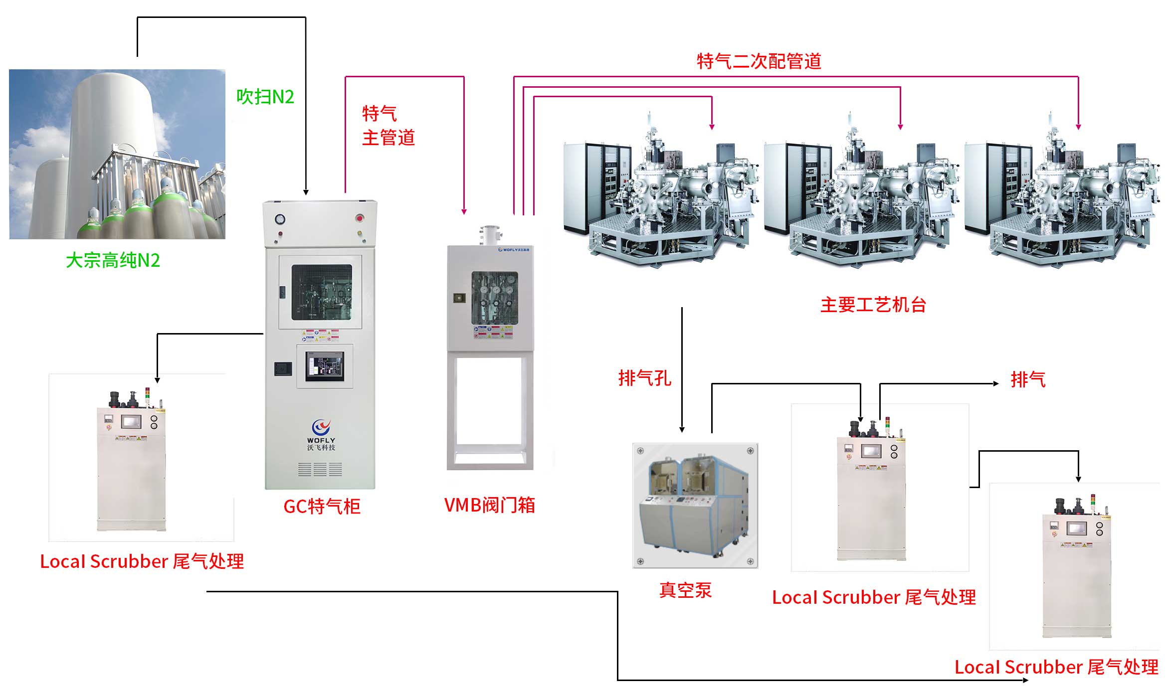 深圳沃飞科技有限公司成立于2011年,公司注册资金2180万,是一家专业从事气体应用系统工程:电子特气管道系统、实验室管道供气系统、工业集中供气系统、Local Scrubber尾气处理系统、大宗气体(液体)系统、高纯气体及特殊工艺气体二次配管系统、化学品输送系统、纯水系统,提供从技术咨询、整体规划、系统设计、选定设备、预制组件、项目现场安装建设、整体系统检测等全套工程技术服务和配套产品销售于一体的高新技术企业;拥有GC2压力管道安装资质、机电安装工程承包资质。工程项目覆盖半导体、集成电路、光电、新能源、微电子、生物医药、科研所、标准检测等高科技行业;为客户提供高纯工艺系统整体解决方案。