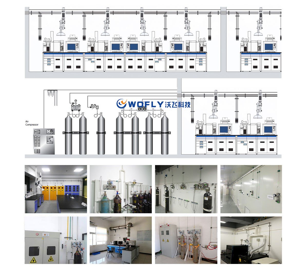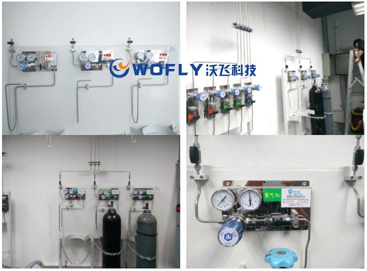 此外,沃飞科技根据实验室环境,配合施工方协作设计方案。众所周知,管路管线交错供气错综复杂,为避免错漏,公司设计人员将每一路气体的交叉点、控制阀都在图纸上注明,通过实地勘察,进行全面、系统地调查分析,为气路设计提供细致、可靠数据。同时在气站建设方面,使用气瓶间管理方式,提高气站使用的安全性,气源控制采用不锈钢控制面板,输送过程管路连接采用不锈钢系列阀门、接头等产品。