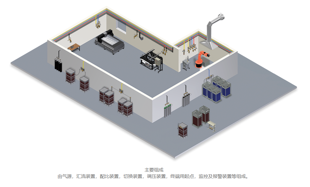 优势:提高生产效率:通过管道网络快速供气,减少气瓶更换时间。