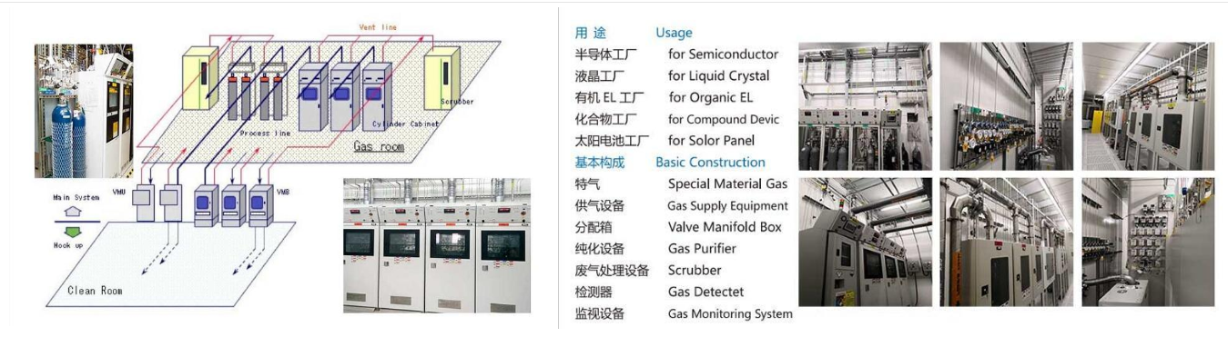 分配部分:包括气体分配盘(VMP)、阀门箱等,用于将气体分配至各个使用点。