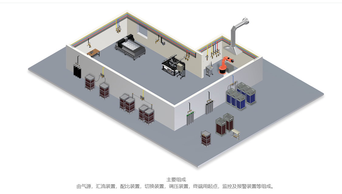 监控报警装置:实时监测气体压力、流量、纯度等参数,异常时自动报警,确保系统安全运行。