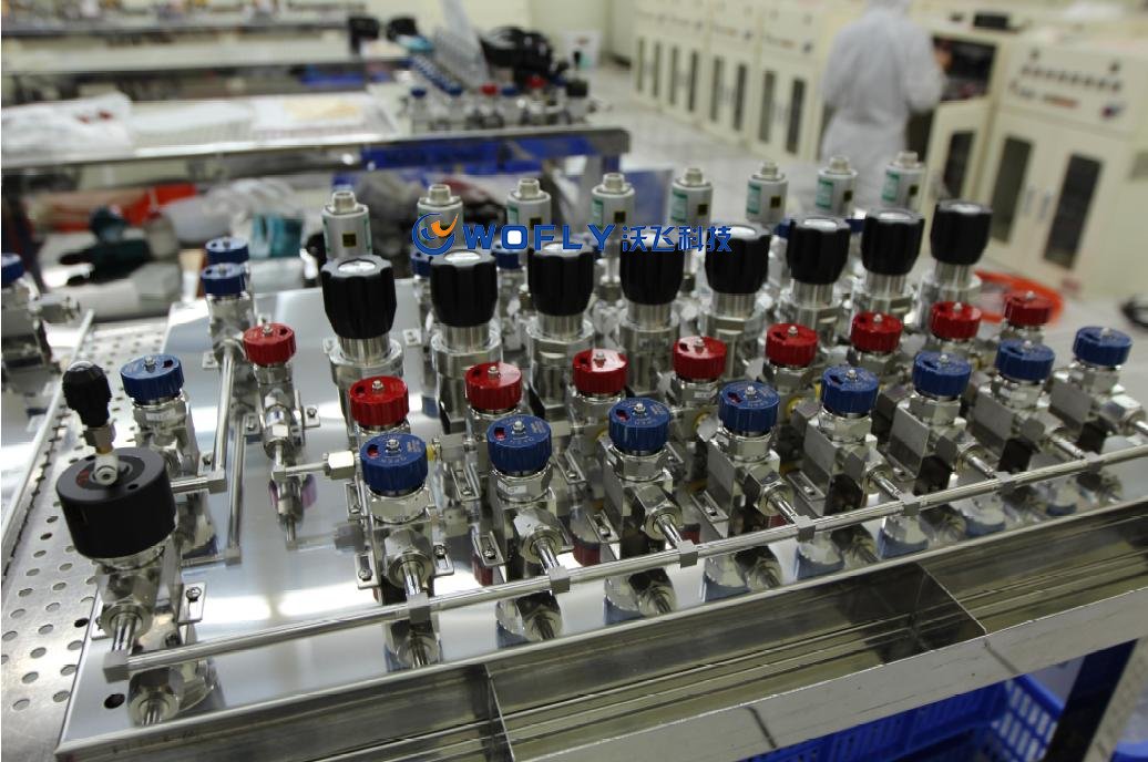 特气输送面板是气源部分非常重要的控制单元。一般工艺气体从钢瓶出来,经过高压控制盘面时,都实现了一次调压、过滤、流量稳定、吹扫、抽真空、压力侦测等功能。不同的气体和工艺需求,可以根据实际情况定制具体功能。现阶段,越来越多的高校实验室引入了ICP、PVD、PEVCD等设备进行芯片镀膜、刻蚀方面的研究,这些工艺气体多是硅烷、乙烯、溴化氢等毒腐、易燃易爆性气体,对于气源的控制要求非常高,也给供气面板提出了很多要求。