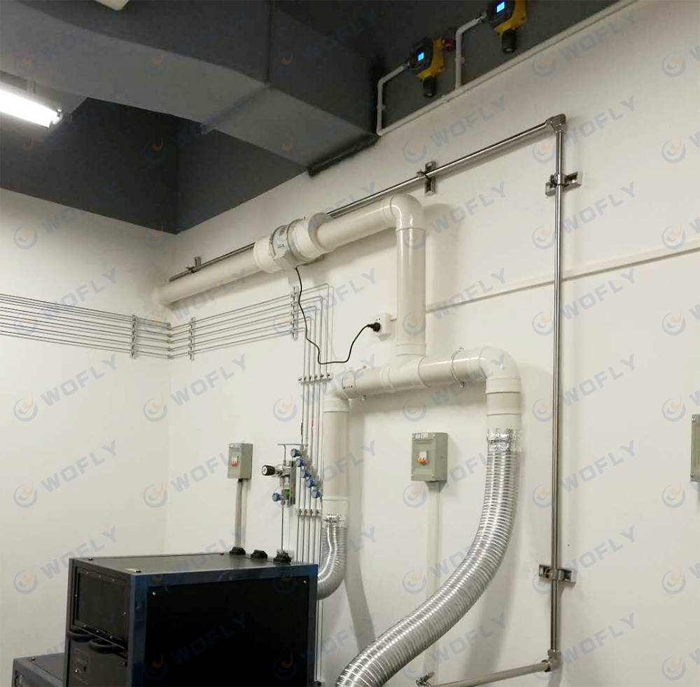 如特种气体中的硅烷(SiH4)为自燃性,一旦泄漏就会与空气中的氧气发生剧烈反应,开始燃烧。砷烷为剧毒性,微量泄漏就可能导致人员的生命危险。因此,对系统设计的安全性要求十分严格,其中关于气体检测报警系统的设置是十分有必要的,避免气体泄露等危险发生。